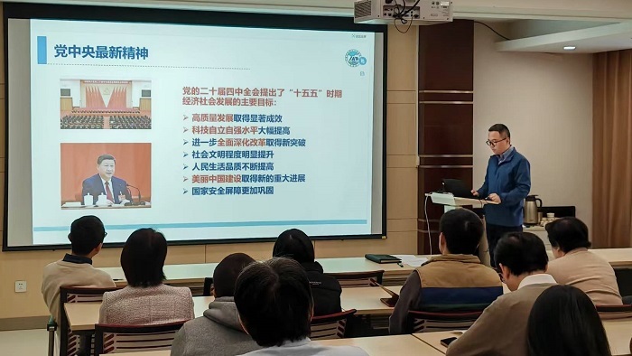 袁星讲了党课,他对党中央最新文件精神、侯建国院长署名文章和新华社专访内容,以及研究所近期制度及工作进行了宣讲。他强调,作为国家战略科技力量主力军,全体党员要进一步增强政治意识和大局观念,将学习成果转化为攻坚克难的强大动力,以更加饱满的热情和更加务实的作风投身科研创新,为实验室高质量发展贡献智慧和力量。