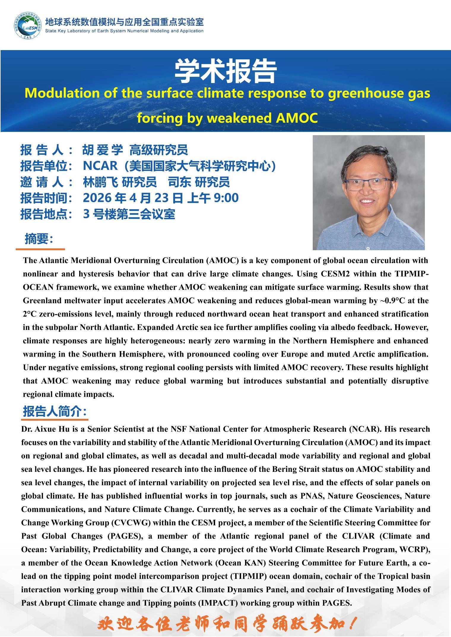 【4.23】Modulation of the surface climate response to greenhouse gas forcing by weakened AMOC